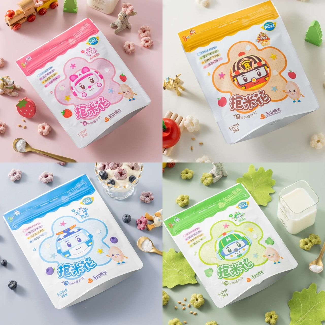 波力聯名『抱米花』手提禮盒組 四款口味各一:草莓、藍莓、蘋果、蔬菜